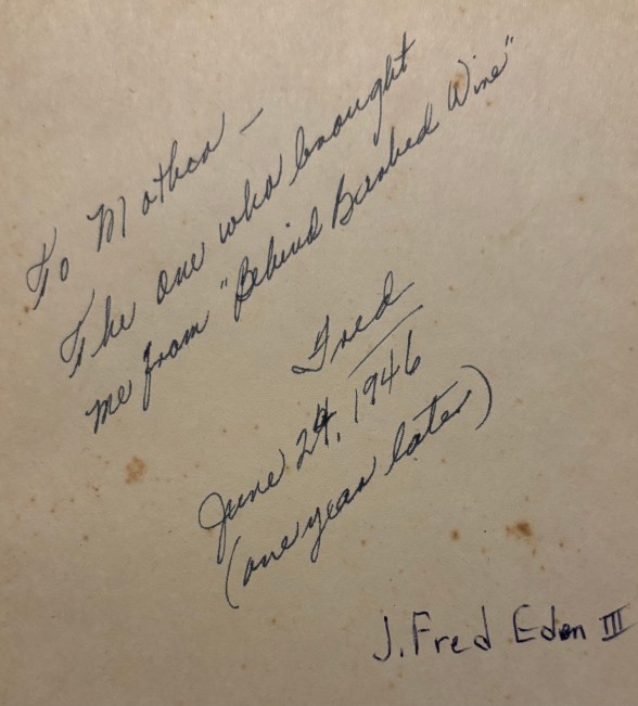 The dedication to the copy Daddy gave to his mother. Apparently a year after his return.
